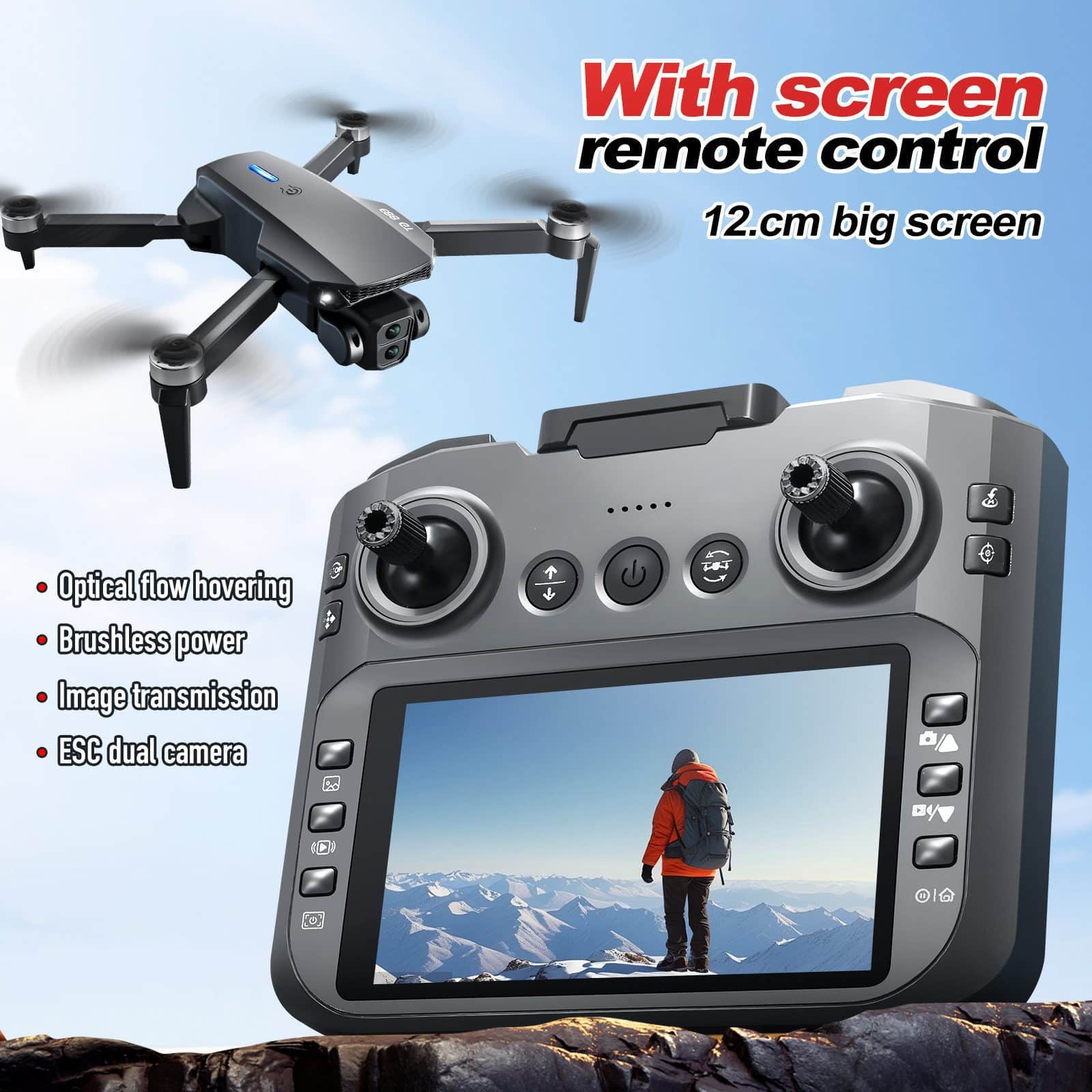 L'E88GT è un drone pieghevole dotato di un display integrato da 4,3 pollici per la visualizzazione in tempo reale. Dotato di motori brushless e posizionamento ottico, garantisce un volo stabile e immagini nitide. Offre avvio, decollo/atterraggio e rollio con un solo clic, insieme a un preciso controllo giroscopico a 6 assi per la salita, la discesa, il movimento direzionale e la sterzata. Altre funzioni includono la modalità headless, il cambio di telecamera e la calibrazione rapida, offrendo un'esperienza di volo professionale per tutti i livelli di abilità.