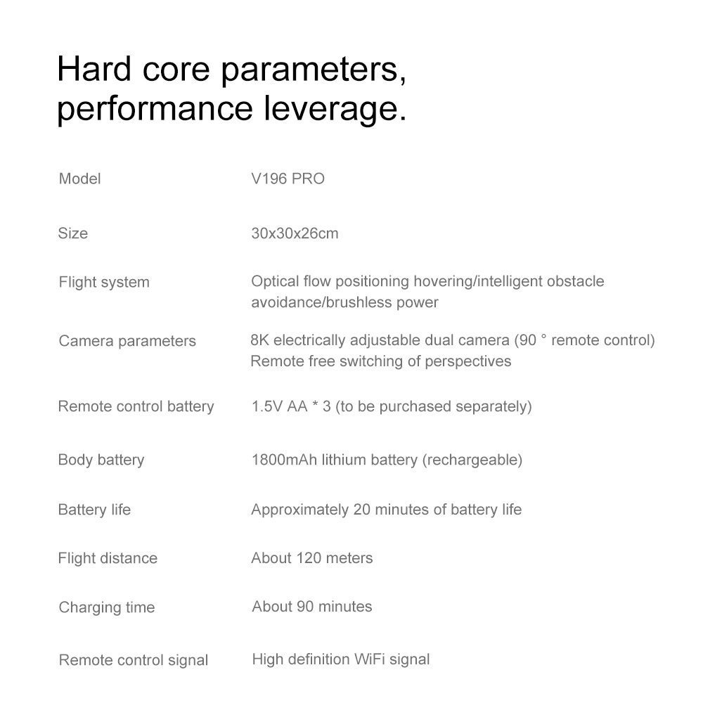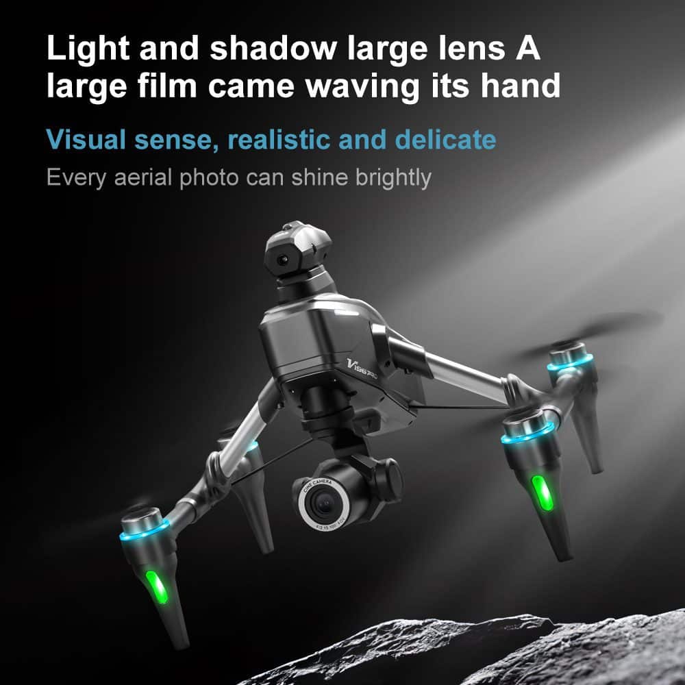 Fantastico drone giocattolo con luci e fotocamera V196, sistema di prevenzione ostacoli a 360°, volo stazionario ottico, fotocamera con telecomando regolabile elettricamente, doppia lente con zoom 50x, volo Waypoint, fotografia con comandi gestuali, effetti di bellezza, decollo e atterraggio con un solo clic, modalità Headless.