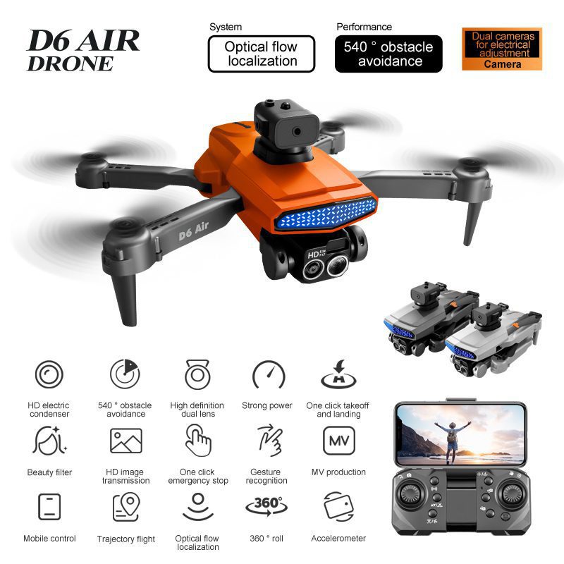 Il D16Pro è un drone versatile che unisce un'estetica dinamica a funzionalità avanzate. È dotato di un corpo pieghevole e leggero, impreziosito da un'accattivante illuminazione che ne migliora la visibilità. Il suo sistema di doppia fotocamera, che include un obiettivo a flusso ottico montato nella parte inferiore, offre angoli di ripresa versatili e regolazione elettrica. Il sistema integrato di prevenzione degli ostacoli a cinque vie e il preciso sistema di volo stazionario con flusso ottico garantiscono un volo stabile e sicuro in vari ambienti. Progettato per un funzionamento prolungato, è alimentato da una batteria modulare, che lo rende una scelta affidabile e visivamente accattivante sia per il volo ricreativo che per la fotografia aerea creativa.