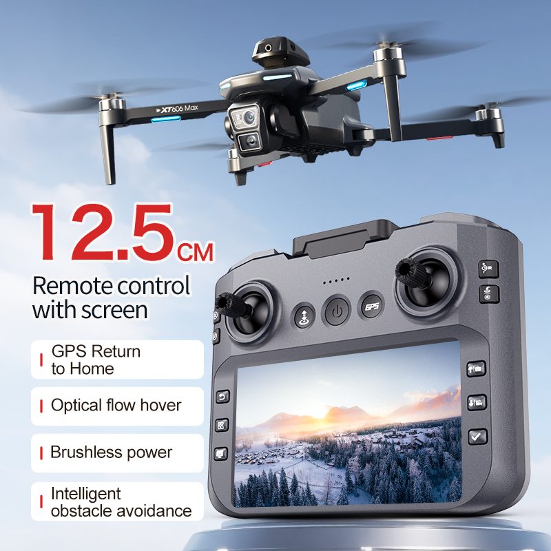 Il drone GPS XT606 integra un telecomando con schermo HD da 4,3 pollici per un monitoraggio coinvolgente in tempo reale tramite una trasmissione stabile delle immagini 5G. Dotato di una fotocamera HD 4K, garantisce riprese aeree professionali. Il posizionamento avanzato in doppia modalità GPS e flusso ottico garantisce un volo stabile e un hovering preciso. Il suo sistema di sicurezza intelligente è dotato di ritorno con un solo tasto e ritorno automatico attivato da batteria scarica, perdita di segnale o distanza eccessiva. Migliorato con l'evitamento degli ostacoli a 360°, il drone supporta anche le modalità di volo intelligente "follow-me" e "surrounding" per un funzionamento dinamico e senza mani, offrendo sia sicurezza che versatilità creativa.