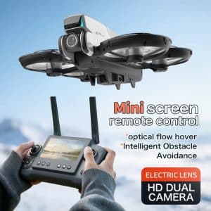 The GT9 is a 4.3-inch screen mini drone toy featuring altitude hold mode for stable hovering and optical flow positioning for precise flight. The body includes an LCD battery indicator. Customize flight paths by drawing on the APP. Smartphone control, headless mode, gesture photo, and brushless motor ensure smooth operation. Weighing 143g, it uses 2.4GHz anti-interference technology and a six-axis gyroscope for enhanced stability. Perfect for aerial fun!