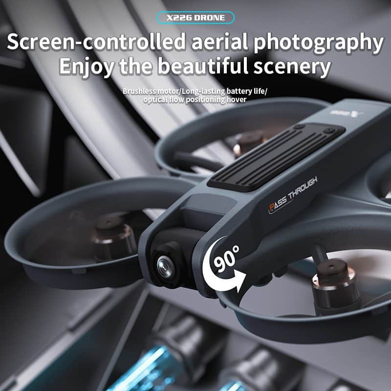 Il mini drone X226, un sofisticato giocattolo volante progettato per esperienze aeree migliorate. Questo innovativo drone è dotato di uno schermo integrato ed è alimentato da un motore brushless, che garantisce prestazioni e stabilità superiori. Dotato di un casco VR e di una telecamera regolabile elettricamente, offre la possibilità di passare da una telecamera all'altra e una funzione di altezza fissa che utilizza la tecnologia del flusso ottico. Altre funzionalità includono il cambio di velocità, la modalità headless, un giroscopio a sei vie e la possibilità di eseguire manovre di rotazione.