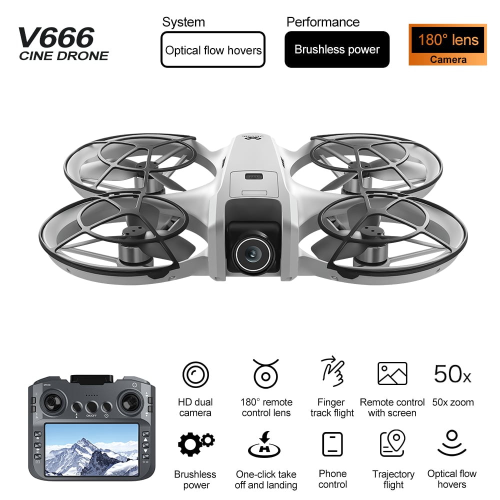 Il V666 è un quadricottero giocattolo avanzato progettato per garantire divertimento e funzionalità. Dotato di un giroscopio a sei assi e di un sistema intelligente di prevenzione degli ostacoli, questo velivolo offre decollo e atterraggio con un solo clic, oltre a manovre di volo versatili che includono salita, discesa e movimenti laterali. Inoltre, la fotocamera ad alta definizione è dotata di fotografia gestuale, registrazione video e un notevole zoom 50x, che lo rendono una scelta eccellente per catturare immagini aeree mozzafiato. Con caratteristiche quali arresto di emergenza, volo a traiettoria e rilevamento della gravità, il mini drone V666 garantisce un'esperienza di volo coinvolgente e sicura.
