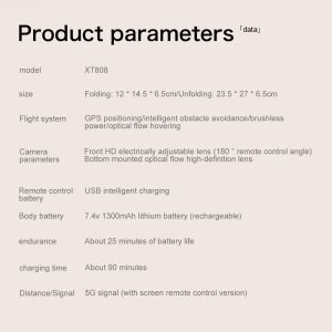 Il drone GPS professionale XT808 è progettato per garantire immagini aeree affidabili e di alta qualità, grazie allo schermo remoto HD da 4,5 pollici con telemetria della batteria in tempo reale per una gestione informata del volo. La sua fotocamera 4K HD offre riprese nitide, trasmesse in diretta tramite una stabile trasmissione 5G. Utilizzando il posizionamento combinato GPS e flusso ottico, garantisce un volo stabile e un hovering preciso. La sicurezza avanzata è garantita dall'evitamento intelligente degli ostacoli con laser a 360° e dalle funzioni complete di ritorno automatico. Per riprese creative, offre funzioni di follow intelligente, volo surround e ritorno con un solo tocco, rendendolo uno strumento versatile sia per il funzionamento autonomo che per il pilotaggio manuale.