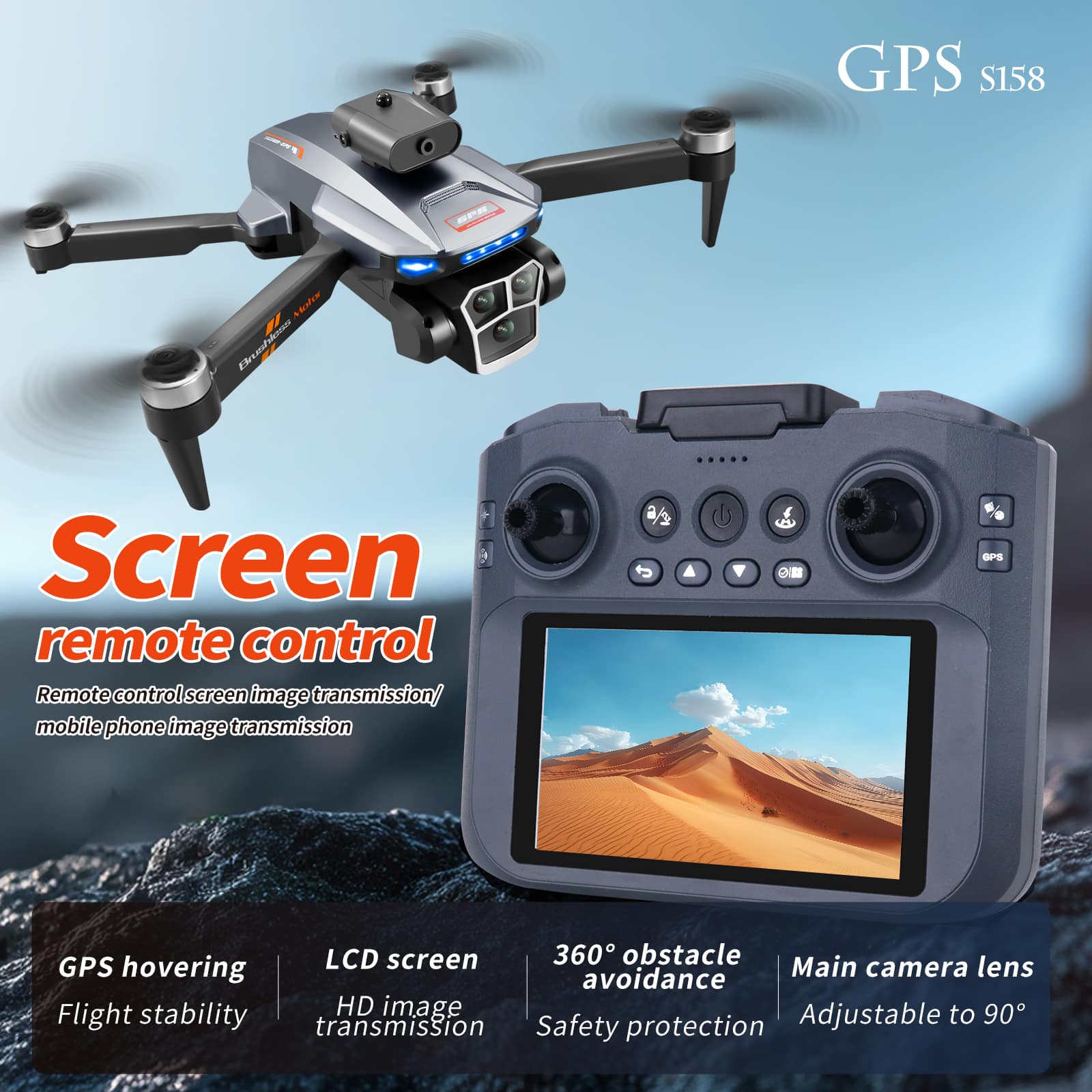 Il drone GPS S158MAX è dotato di uno schermo di controllo remoto HD da 4,5 pollici, che offre un'esperienza utente migliorata. È dotato di funzionalità GPS avanzate come funzioni di ritorno intelligenti, tra cui opzioni di ritorno in caso di distanza eccessiva, batteria scarica e fuga. Inoltre, il drone incorpora un sistema di prevenzione degli ostacoli a 360°, una fotocamera frontale regolabile elettricamente con stabilizzazione elettronica dell'immagine e modalità di volo intelligenti di seguimento e volo stazionario. Con una lunga durata della batteria e il posizionamento cartografico in tempo reale, questo drone GPS è progettato sia per uso ricreativo che professionale, garantendo un funzionamento senza interruzioni e una fotografia aerea di alta qualità.